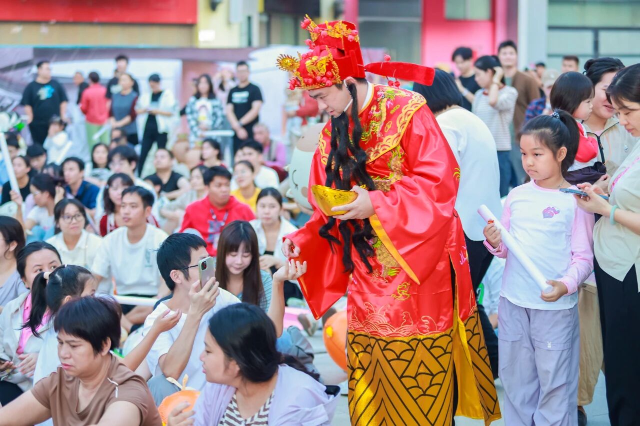 福、禄、寿、喜、财五路财神主题打卡点成“热门机位”,市民举着 “财” 字立牌、“福” 字灯笼拍照发圈,参与集卡活动赢取周边礼品,不少家长带着孩子打卡 “喜神”,沾周年庆喜气。
