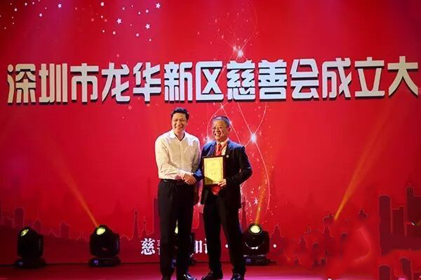 摄于2016年,廖宇波当选龙华区慈善会创会会长。